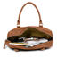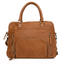 Cabas format A4. Porté main, épaule ou bandoulière. Bandoulière réglable et amovible (longueur maximum : 110 cm). Fermeture zip en métal. Extérieur : trois poches zippées à l’avant et une poche zippée à l’arrière. Intérieur : une poche zippée et deux poches kangourou. Cuir de vachette véritable. Doublure coton. Dimensions : H 27 x L 36 x P 13 cm.